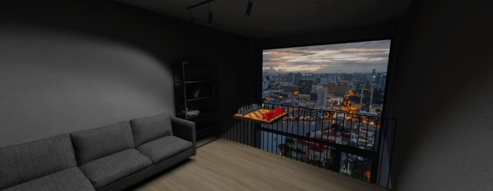 This apartment was created because I had another week of vacation and was bored. All objects can be moved freely in it. It includes a toggleable chess game on the upper floor, as well as a few smaller decorative elements like a lava lamp.